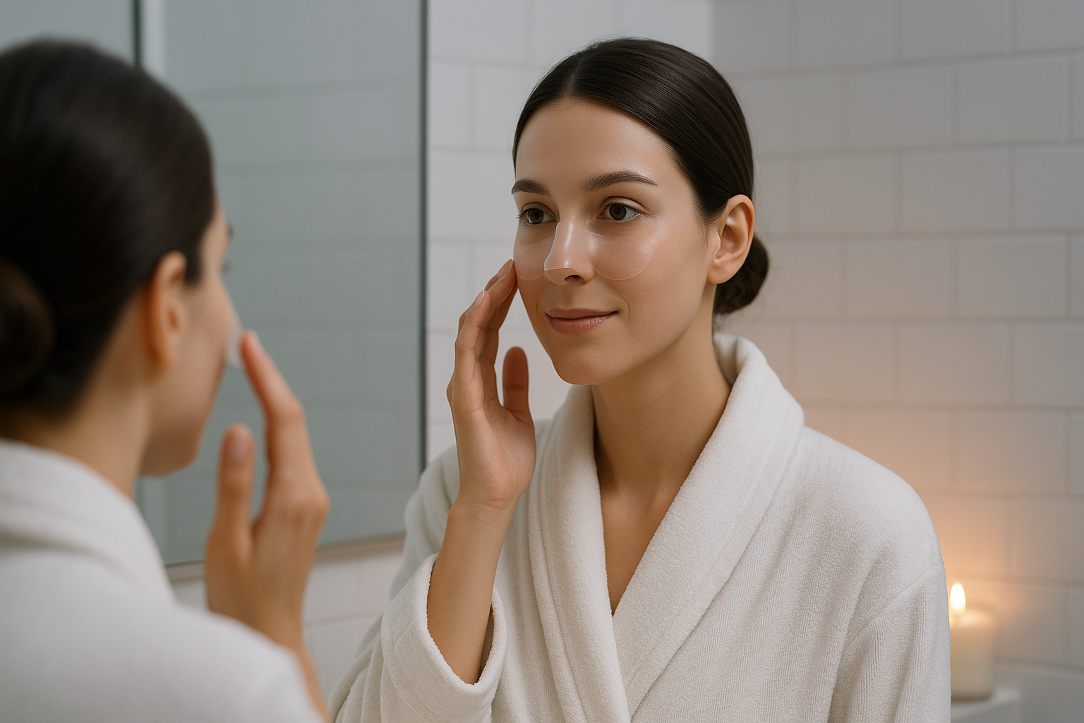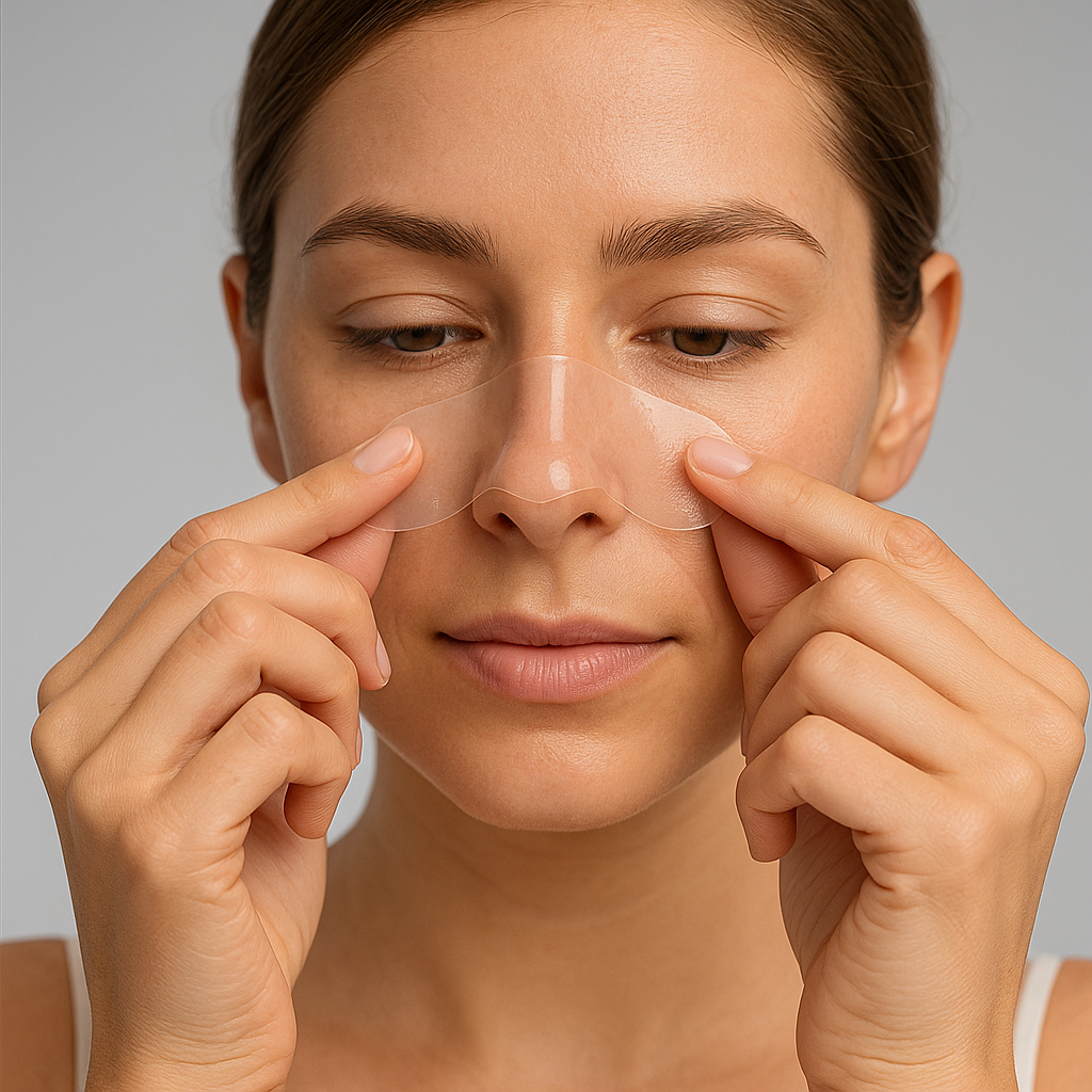 Peel off one patch and apply it evenly over your nose. Let the hydrocolloid layer work its magic while you sleep or relax for 6–8 hours.